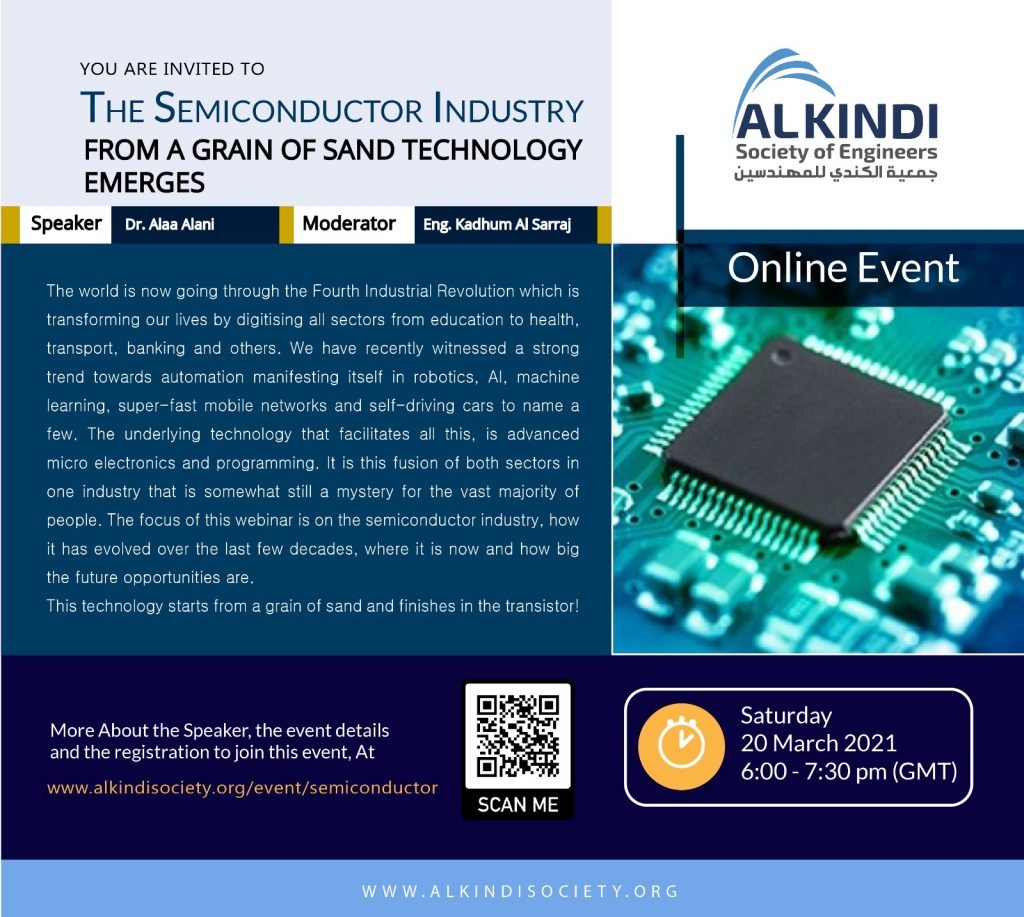 يمر العالم الآن بالثورة الصناعية الرابعة التي تحول حياتنا جميعاً من خلال رقمنة العديد من القطاعات كالتعليم والصحة والنقل والبنوك والأتصالات وغيرها. لقد شهدنا مؤخرًا اتجاهًا قويًا إلى التشغيل الآلي (الأتمتة) الذي يتجلى في الروبوتات والذكاء الاصطناعي والتعلم الآلي وشبكات الأتصالات فائقة السرعة والسيارات ذاتية القيادة على سبيل المثال لا الحصر. التكنولوجيا الأساسية التي تسهل كل هذا التطور تكمن في صناعة الالكترونيات الصغيرة المتقدمة والبرامجيات واندماج كلا القطاعين في صناعة تعتبر لحد ما لغزا للغالبية العظمى من الناس. ينصب تركيز هذه الندوة على صناعة أشباه الموصلات، وكيف تطورت على مدى العقود القليلة الماضية، وأين هي الآن، ومدى ضخامة الفرص المتاحة في المستقبل